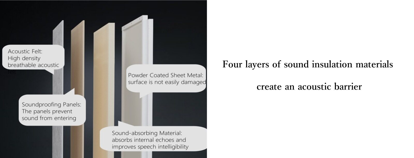 - Sound Insulation Materials: including high-density sound-absorbing panels and sound-insulating wood boards, as well as sound-absorbing cotton and sheet metal materials, effectively isolate the sound. The use of soundproof glass creates a quiet space